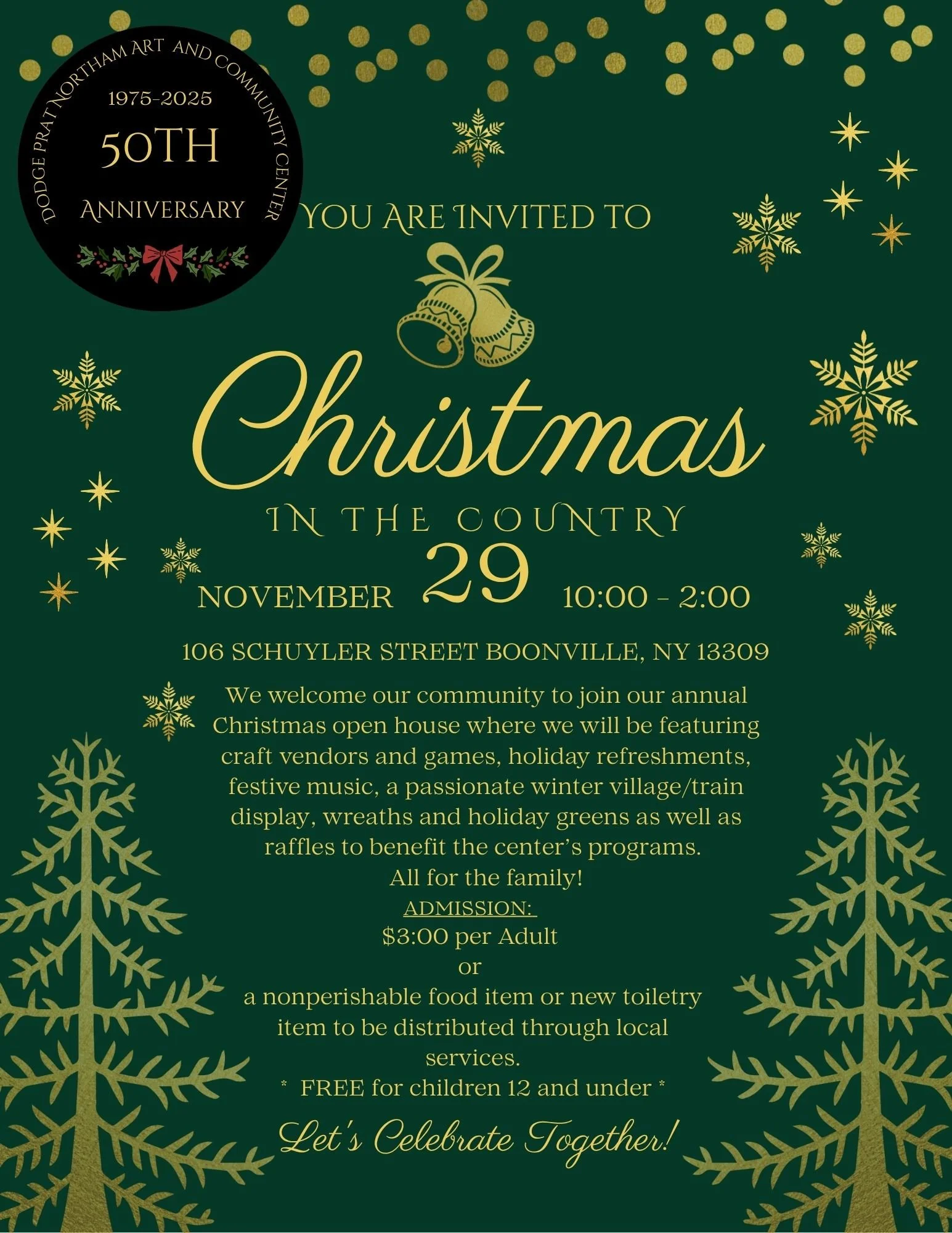 Come celebrate with us! Saturday, November 29, 2025 10:00 AM 2:00 PM 10:00 14:00 Dodge Pratt Northam Art & Community Center 106 Schuyler Street Boonville, NY 13309 USA (map) Google Calendar ICS